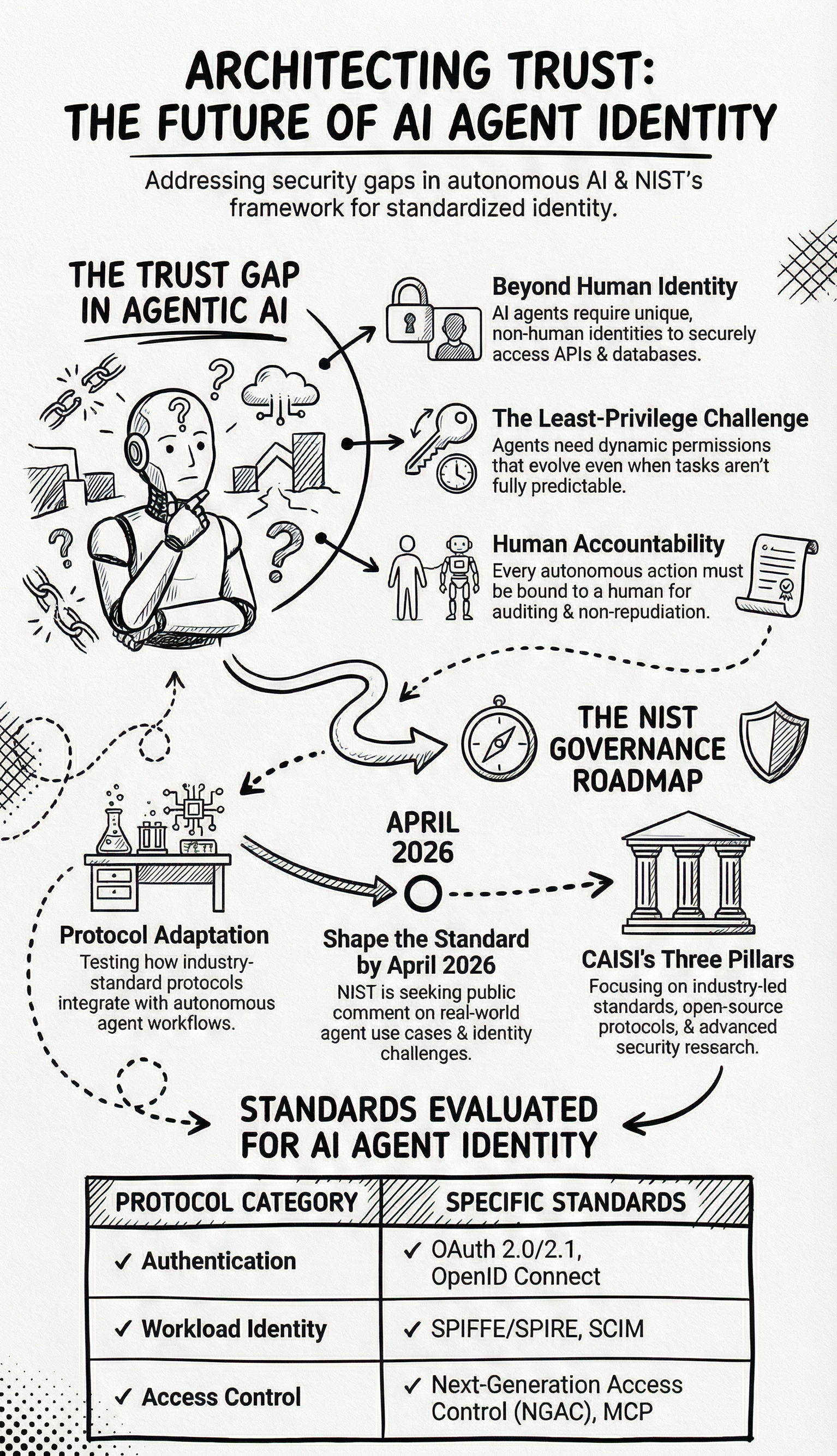 This NCCoE project sits within a larger initiative that NIST's Center for AI Standards and Innovation (CAISI) launched in February 2026: the AI Agent Standards Initiative. The initiative is focused on three areas. The first is facilitating the development of industry-led standards and ensuring U.S. leadership in international standards bodies as those standards are debated and adopted. The second is supporting community-led open-source protocol development, recognizing that protocols like MCP will be shaped as much by the open-source ecosystem as by formal standards bodies. The third is advancing research in AI agent security and identity to enable new use cases and build the technical foundation for trusted adoption across sectors including healthcare, finance, and education.
